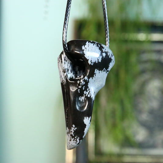 raven schedel / hanger Sneeuwvlok obsidiaan