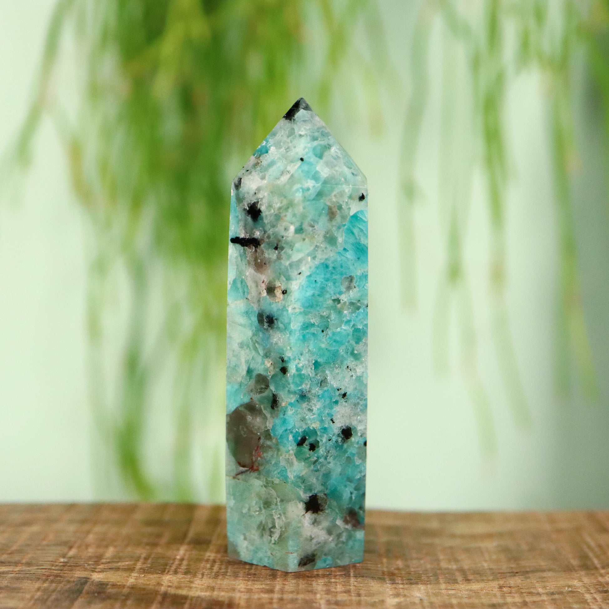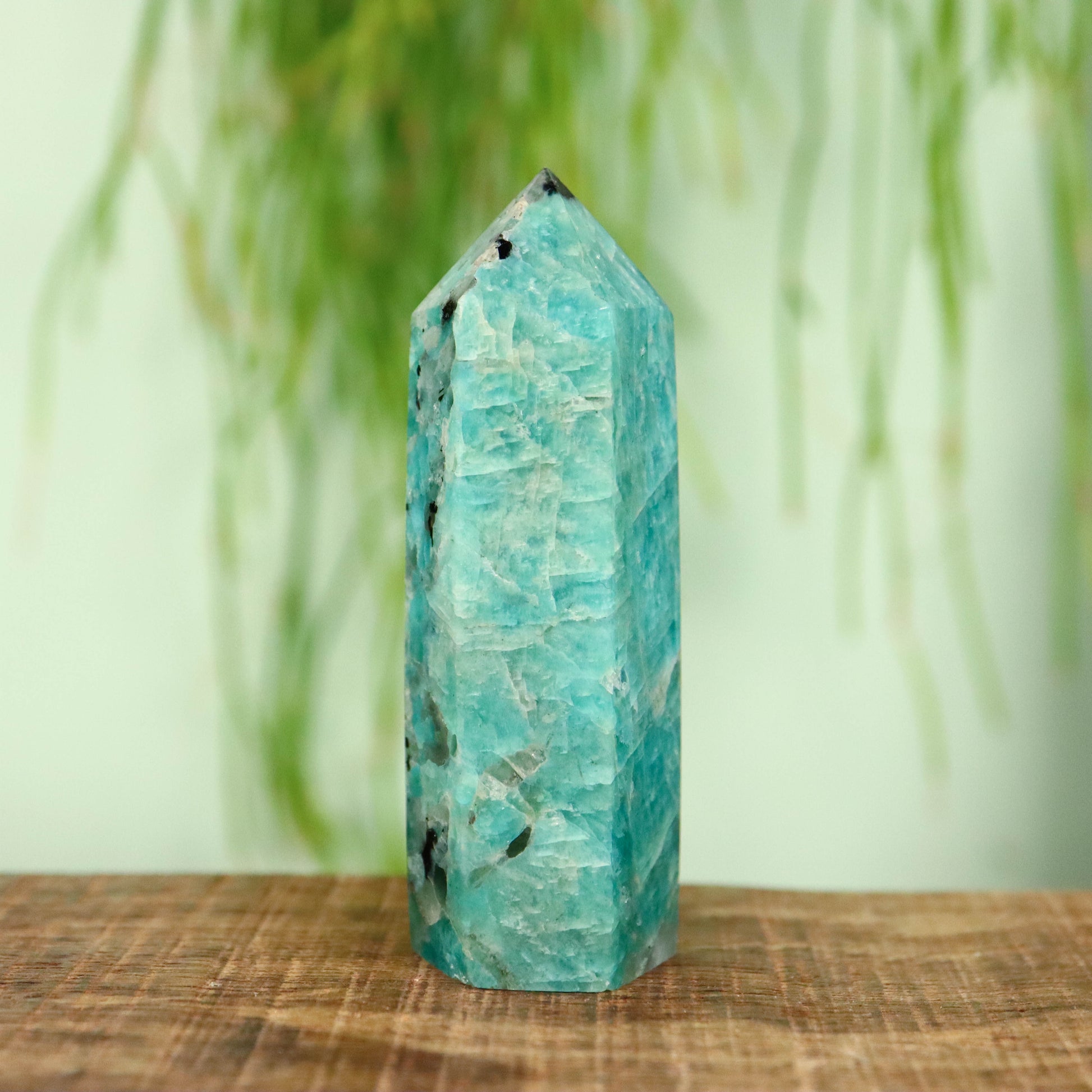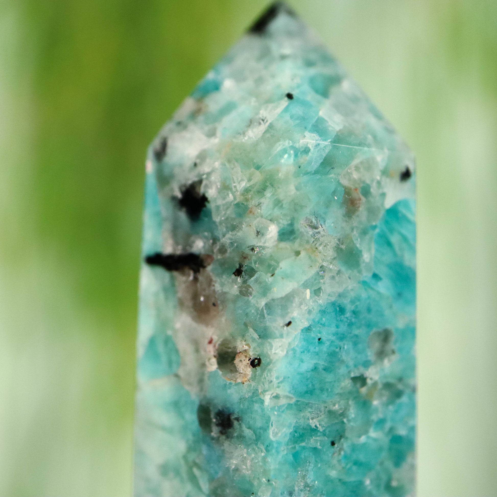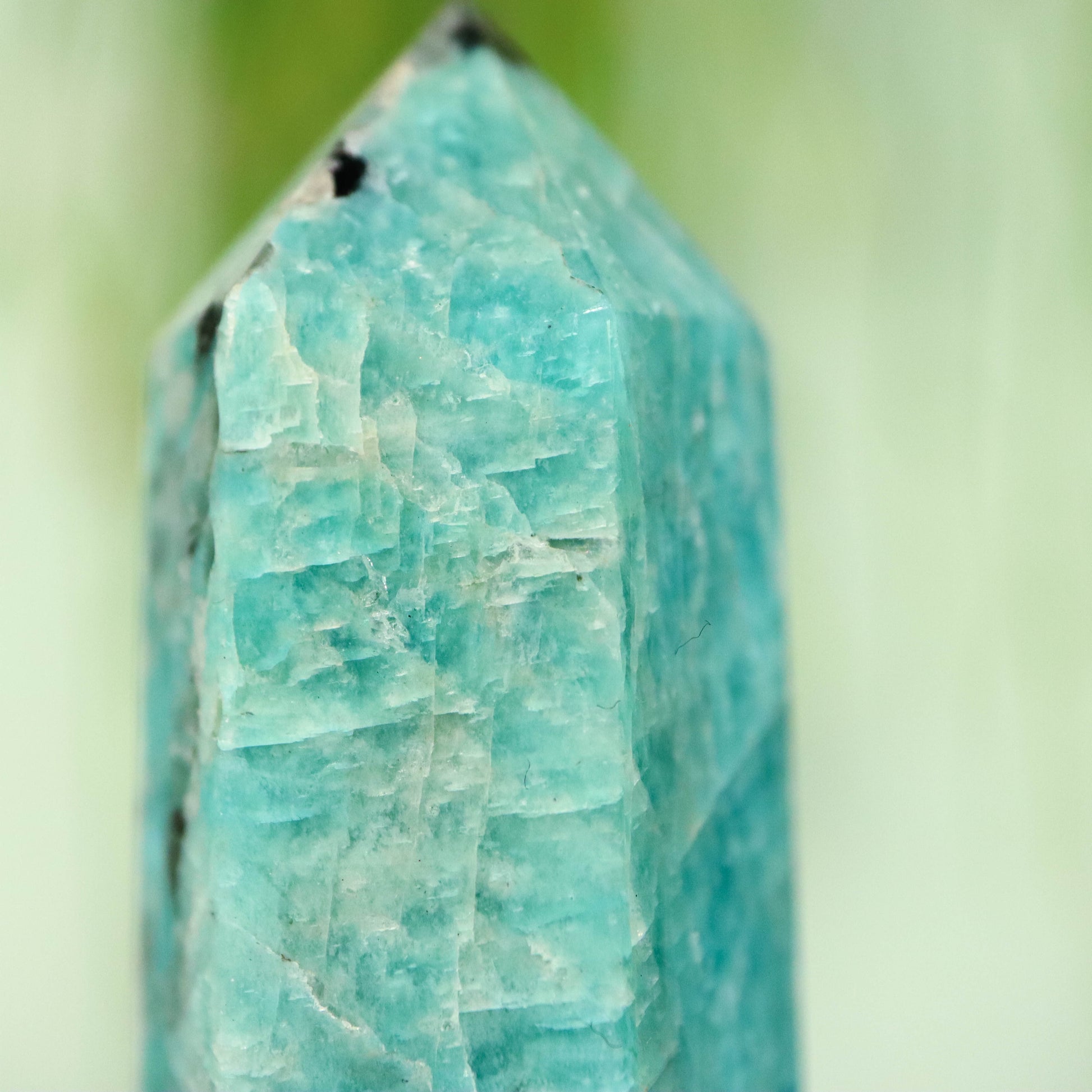Amazoniet wordt in de wereld van kristaltherapie en metafysische praktijken gezien als een steen die waarheid, eer en communicatie bevordert. Dit groenblauwe mineraal wordt beschouwd als een kalmerende steen, die stress en angst zou kunnen verminderen en helpt bij het bevorderen van harmonie en evenwicht. Het wordt vaak gebruikt om een positieve energie te creëren die helpt bij zelfreflectie en zelfontdekking, waardoor het voor velen een aantrekkelijke steen is voor persoonlijke groei en spirituele ontwikkeling. In deze toegeschreven eigenschappen van amazoniet vinden veel mensen  troost, mede door zijn aantrekkelijke uiterlijk en het gevoel van rust dat het zou bieden.