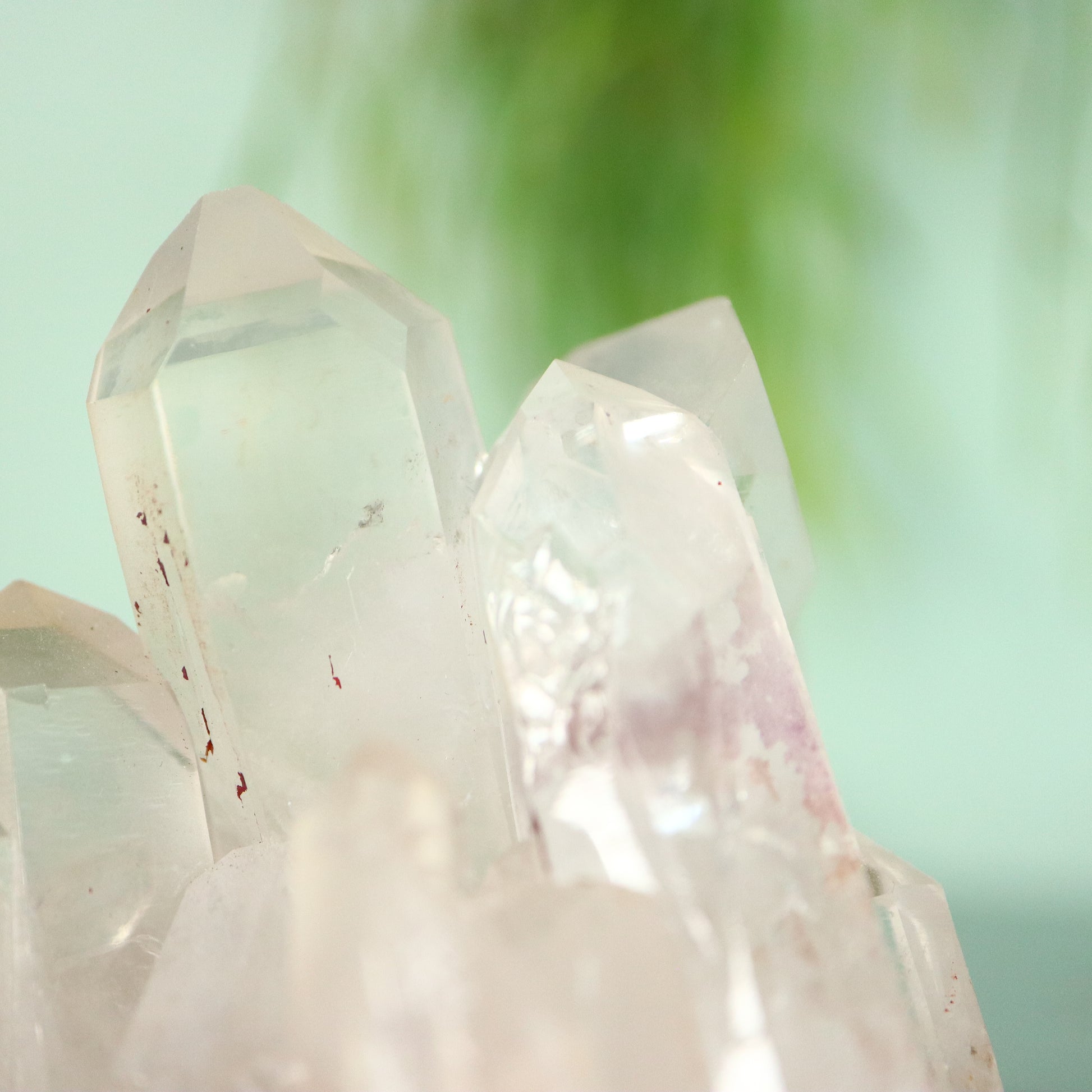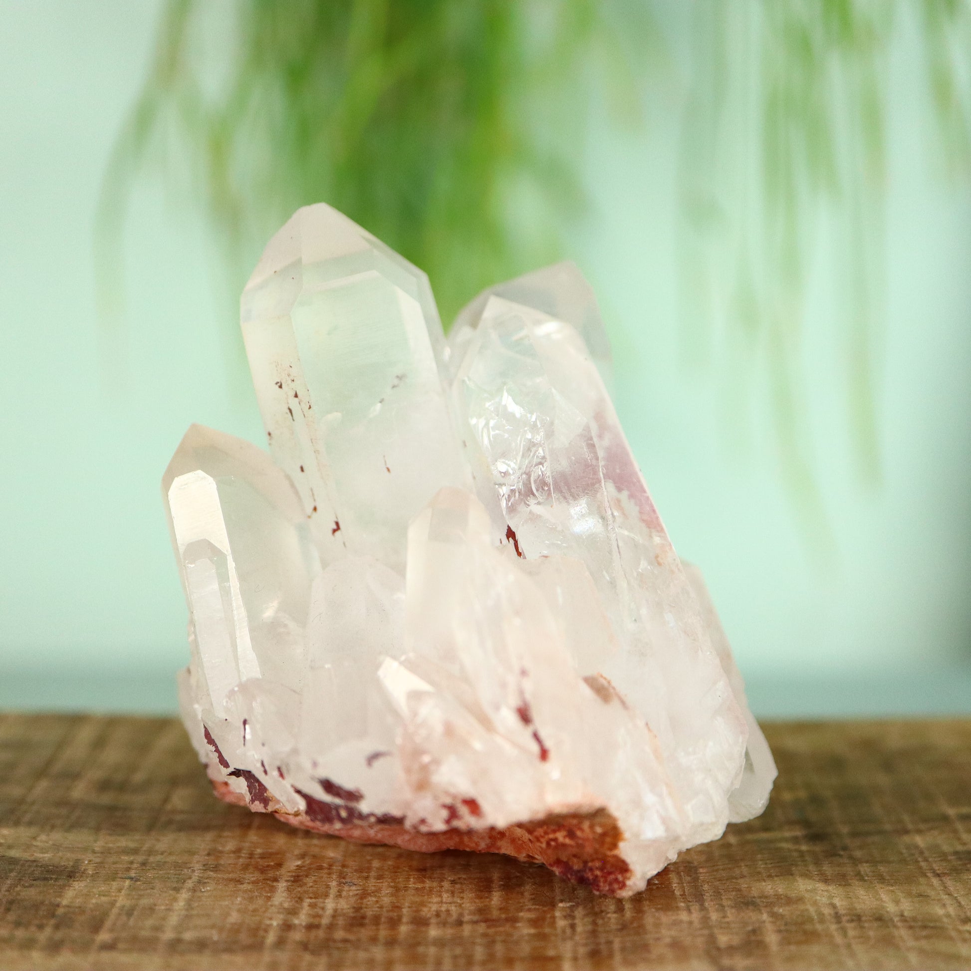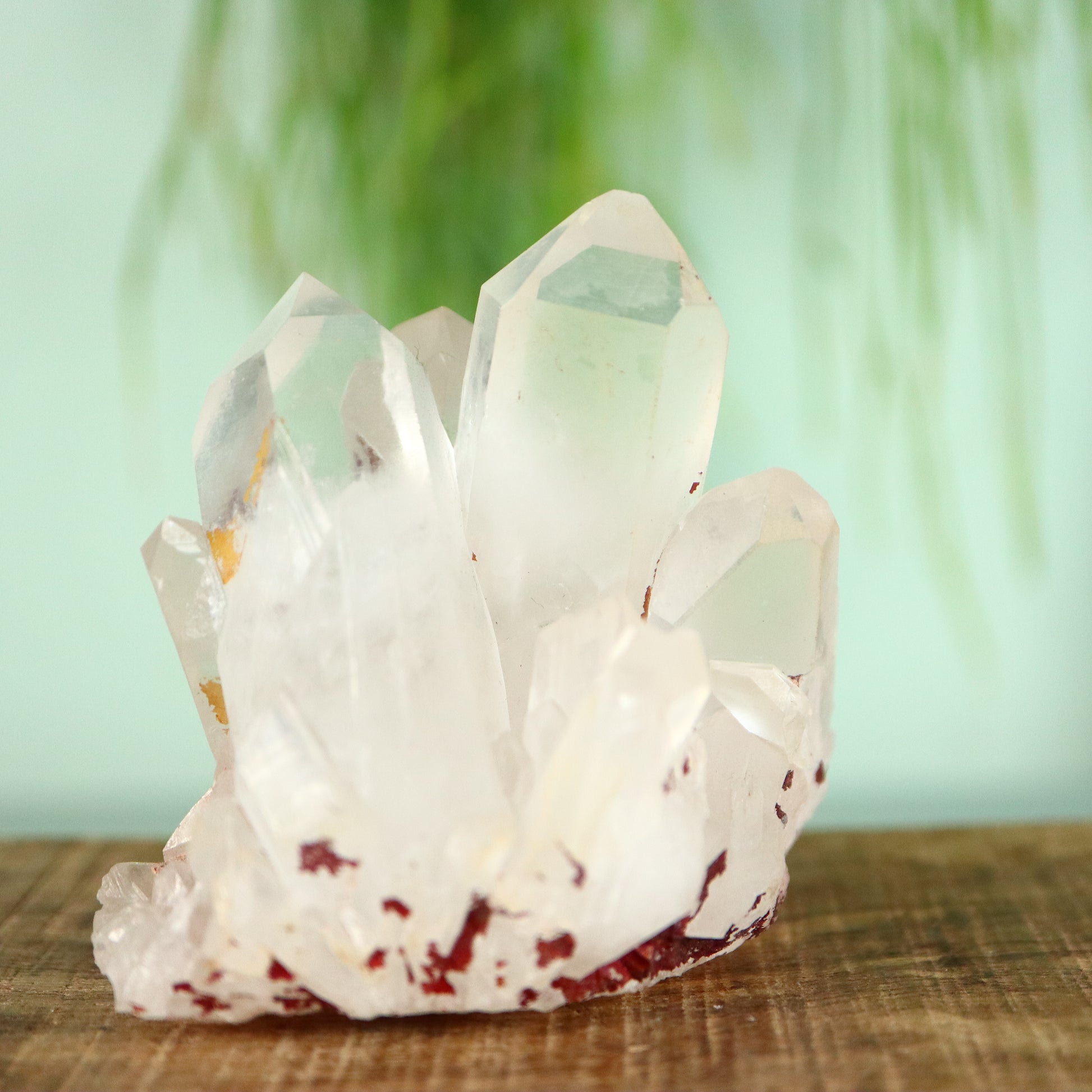 Het rode op het kristal is hematiet, en is gemakkelijk te verwijderen mocht je dat graag willen.
