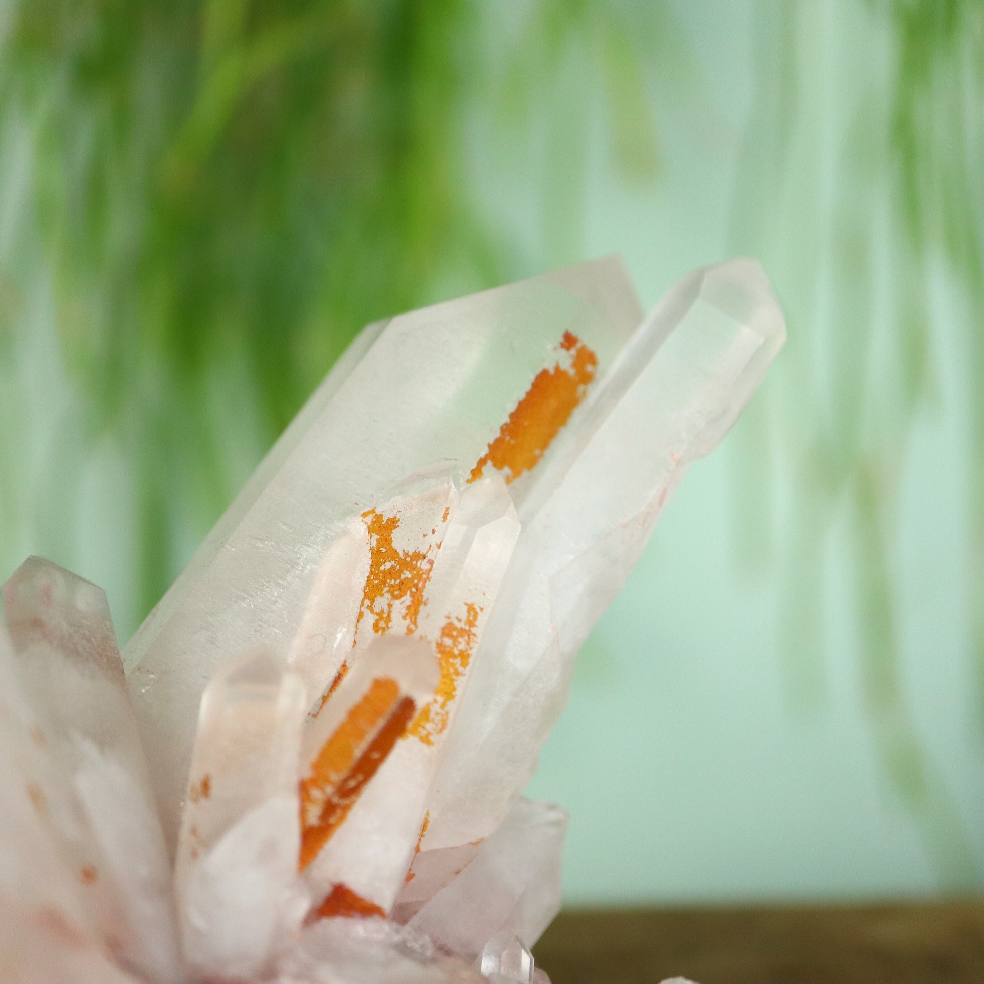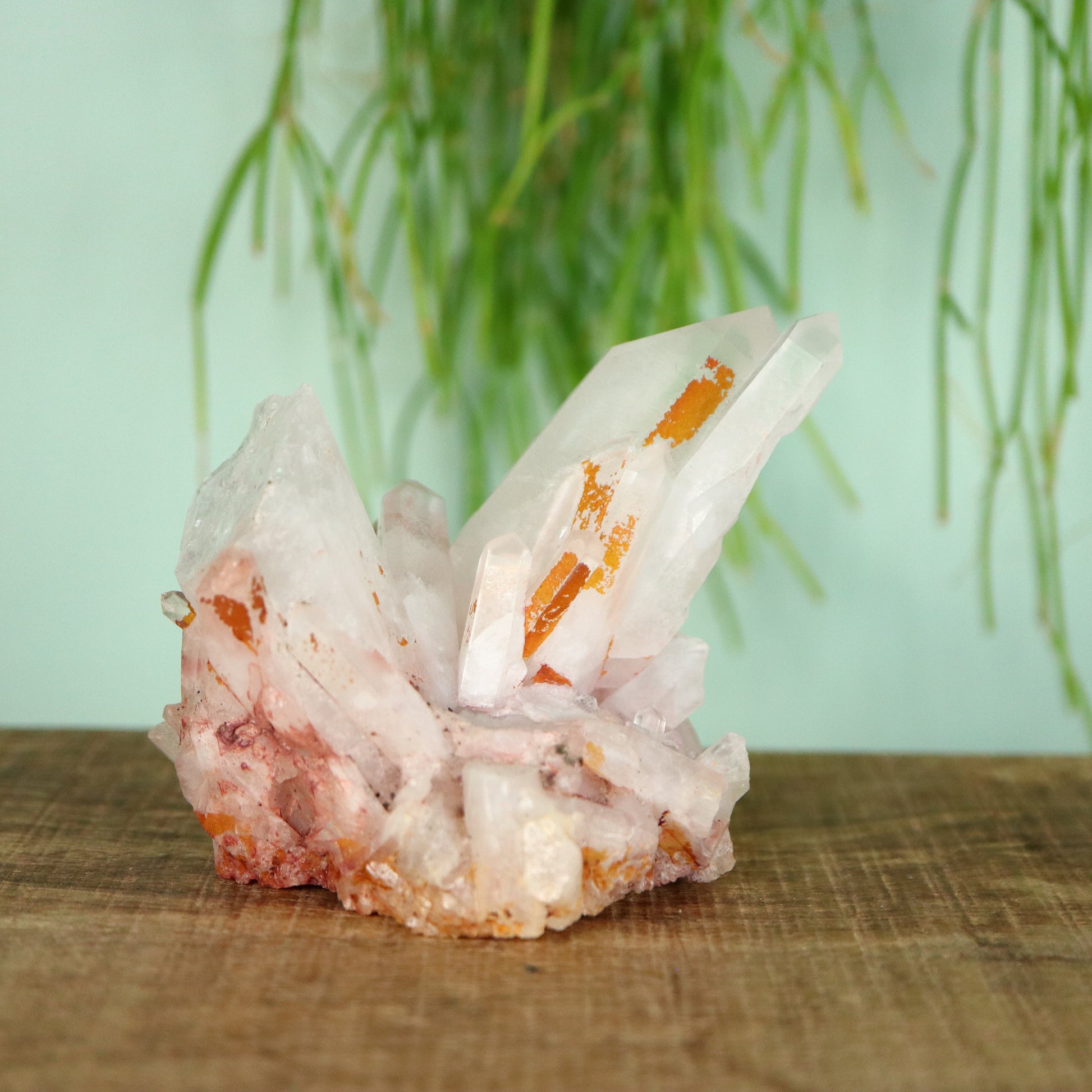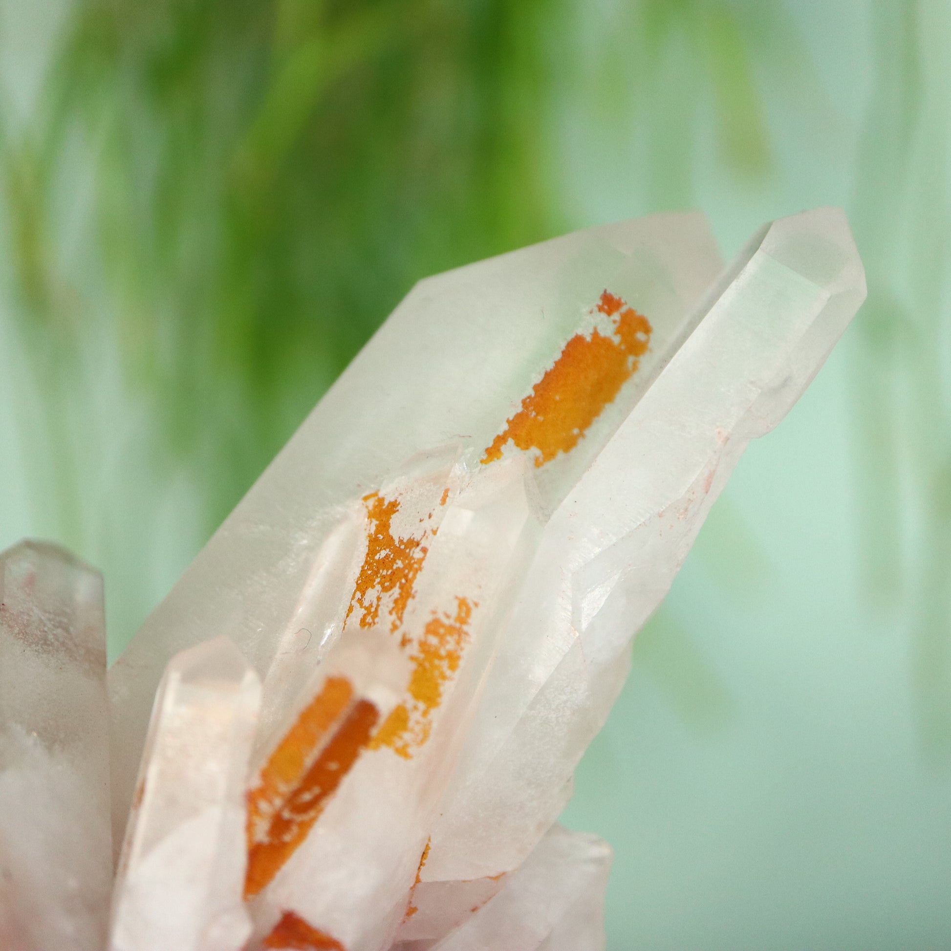 Het rode op het kristal is hematiet, en is gemakkelijk te verwijderen mocht je dat graag willen.