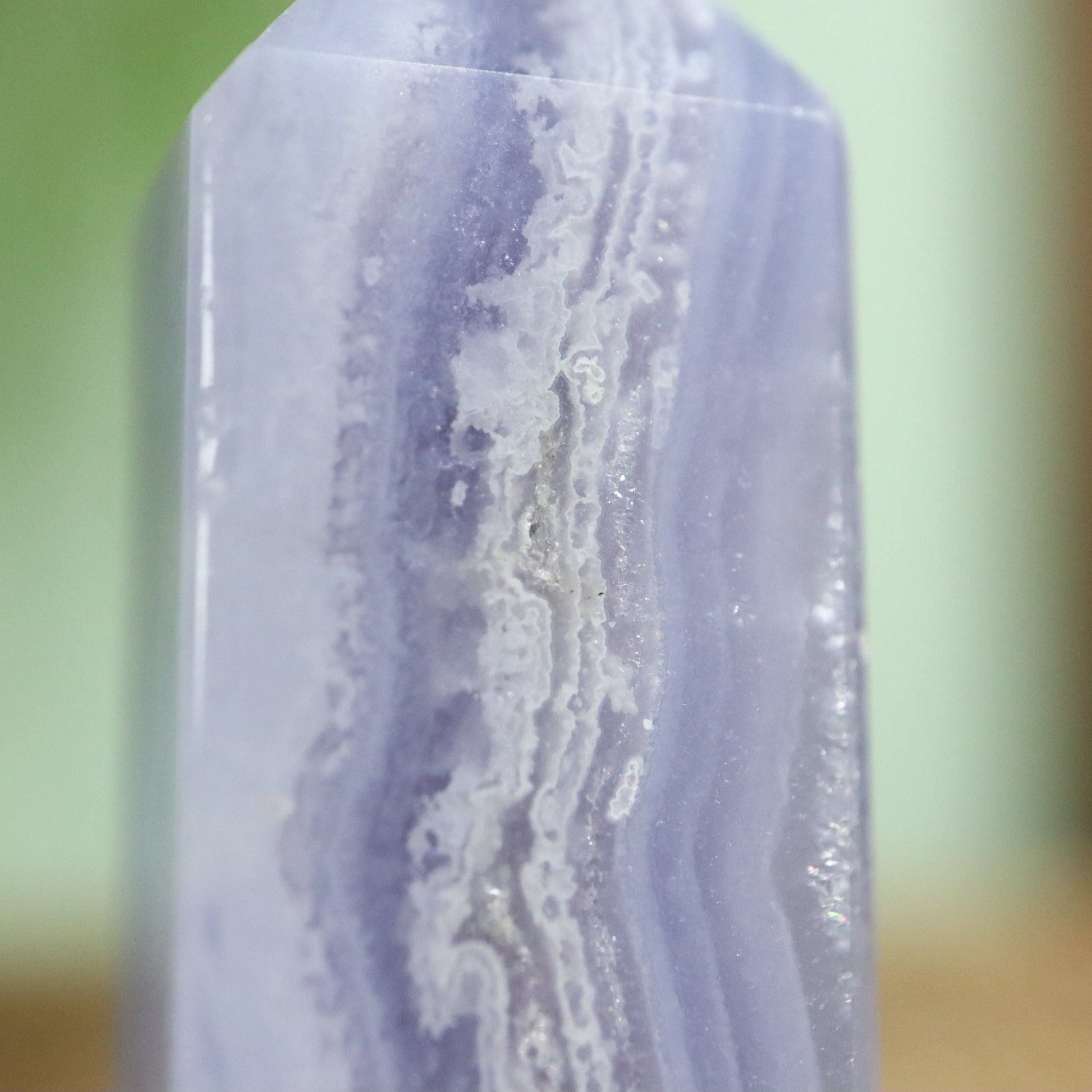 Een lichtblauw gestreepte variëteit van Agaat (Chalcedoon) Als lid van de uitgebreide agaatfamilie, is blauwe kant agaat of wel ’’blue lace agate’’ een vrij harde steen en extreem duurzaam.