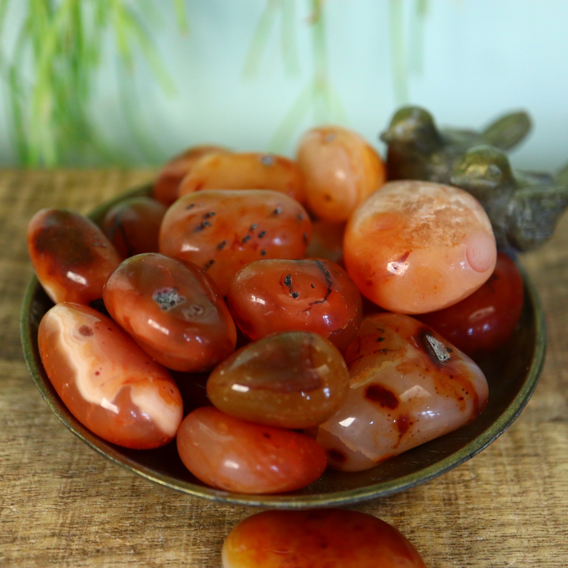 Carneool wordt in kristaltherapie en metafysische praktijken vaak gezien als een steen die vitaliteit en moed bevordert, evenals de kracht van ware expressie. Deze oranje tot rode steen wordt geassocieerd met de lagere energiecentra van het lichaam, en wordt verondersteld om passie, motivatie en een gevoel van empowerment te stimuleren. Het is een populaire steen voor degenen die zich artistiek willen uiten of hun zelfvertrouwen willen vergroten. Carneool wordt ook toegeschreven aan het hebben van beschermende eigenschappen, waarbij wordt aangenomen dat het de drager beschermt tegen negatieve energieën en helpt bij het maken van gezonde levenskeuzes.
