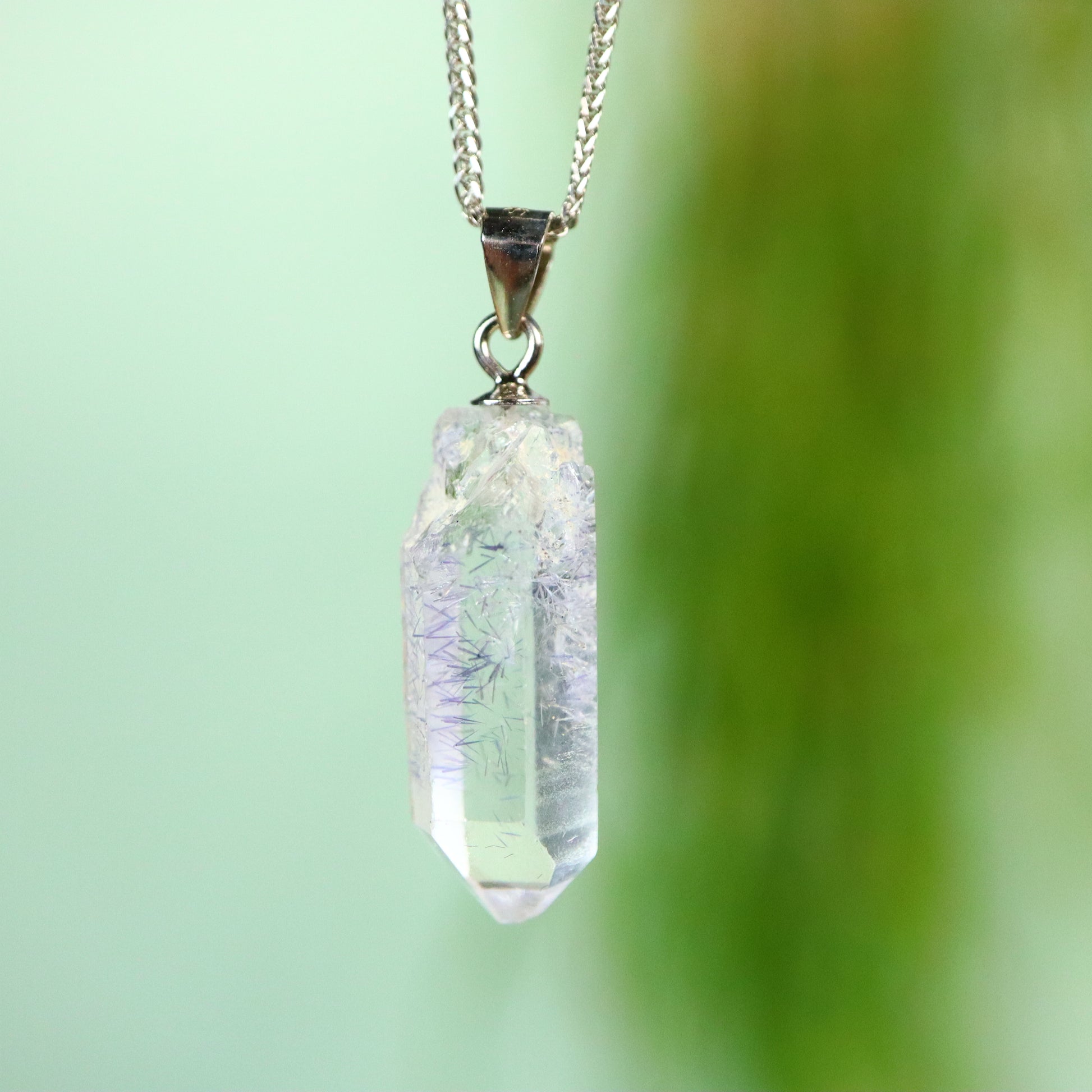 De combinatie van kwarts en dumortieriet creëert een harmonisch samenspel van versterking en inzicht: kwarts fungeert als energieversterker, terwijl dumortieriet de geest tot rust brengt en spirituele wijsheid verdiept. Ideaal voor meditatie, studie of momenten waarop concentratie en helderheid essentieel zijn.