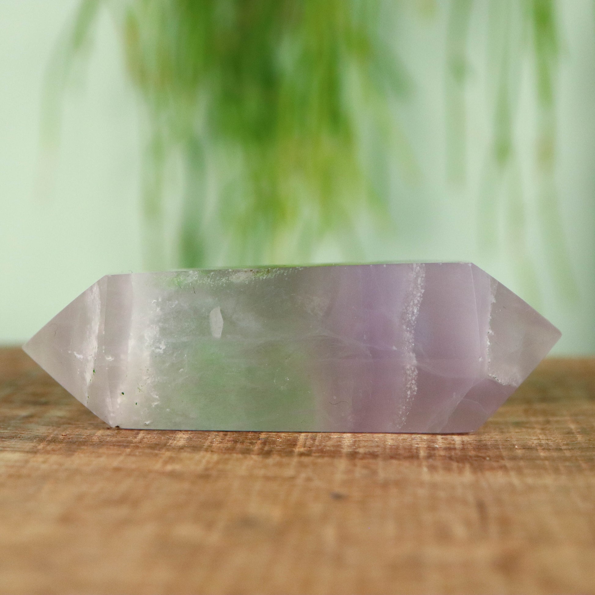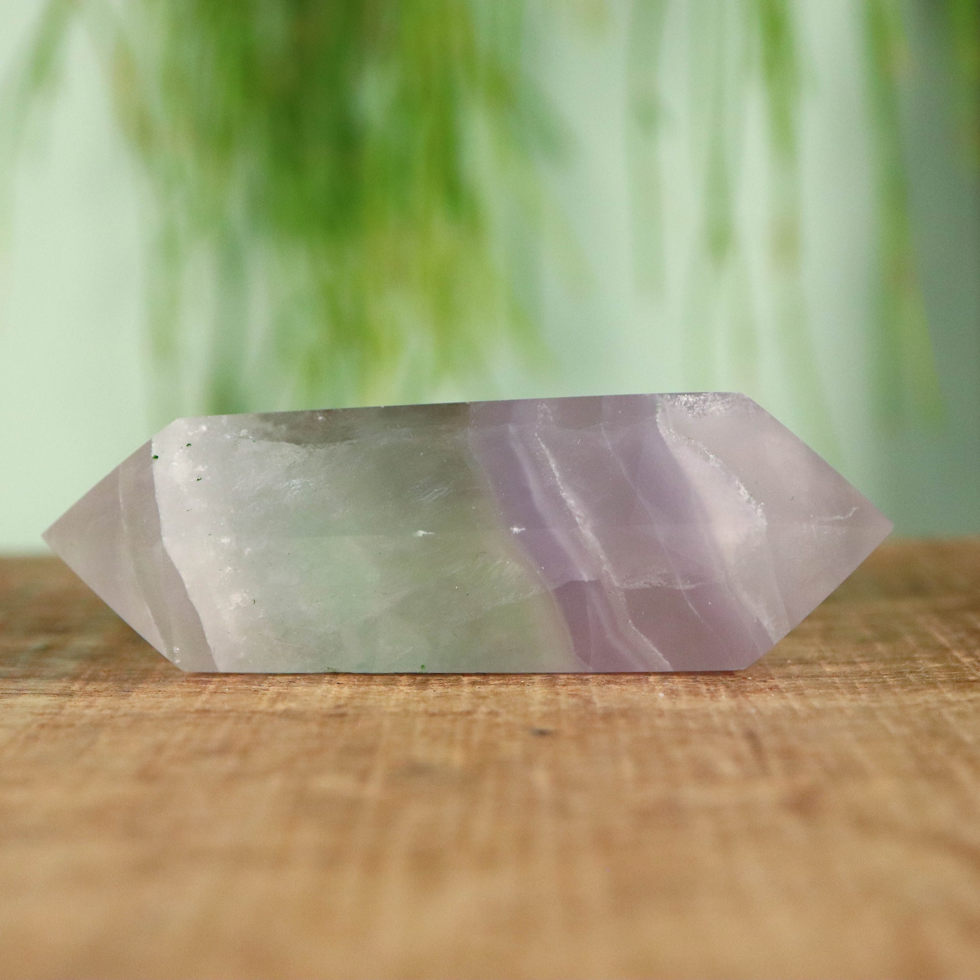 Regenboog: Regenboogfluoriet toont een combinatie van kleuren, vaak als gevolg van verschillende lagen of zones binnen het kristal die verschillende insluitsels of variaties in de chemische samenstelling hebben.