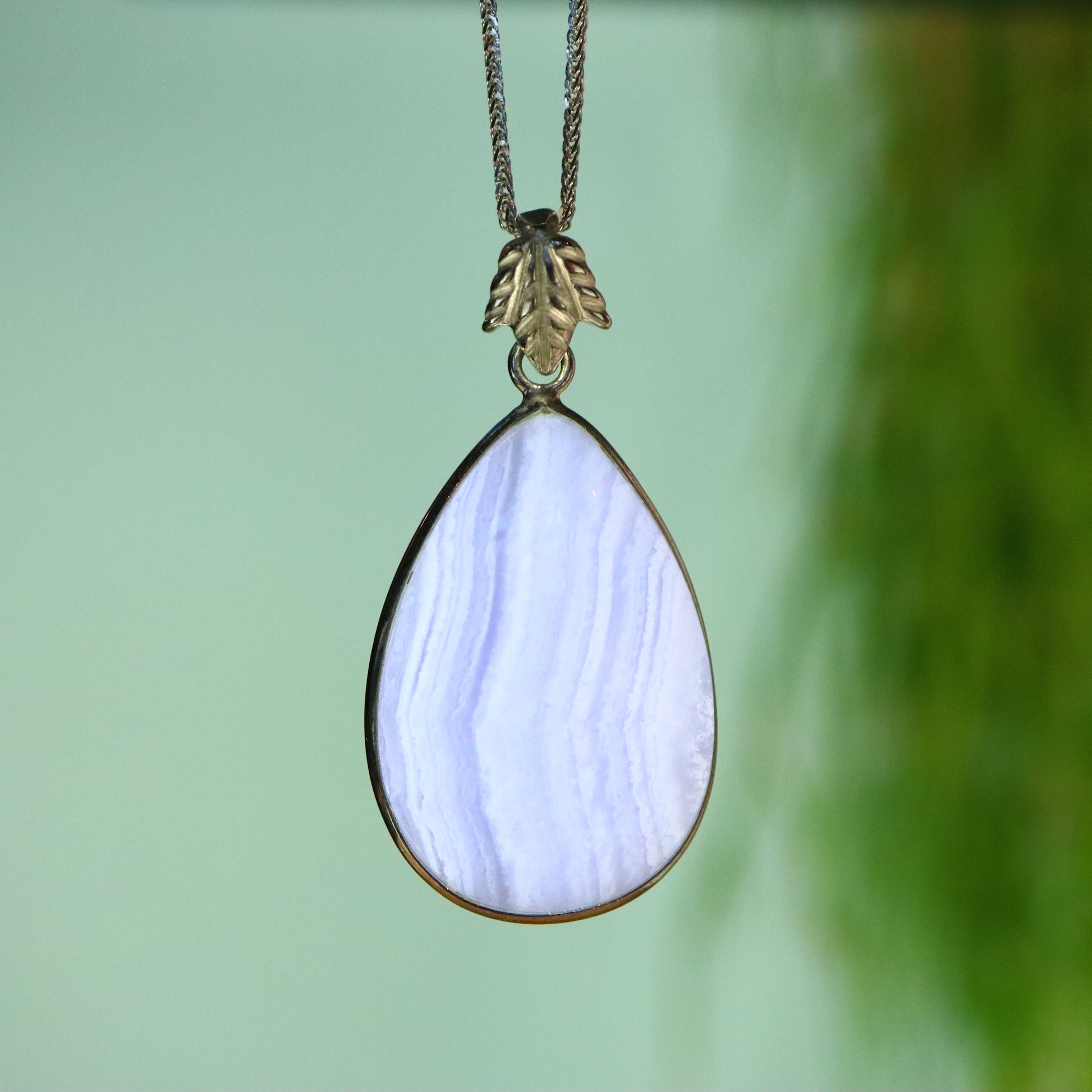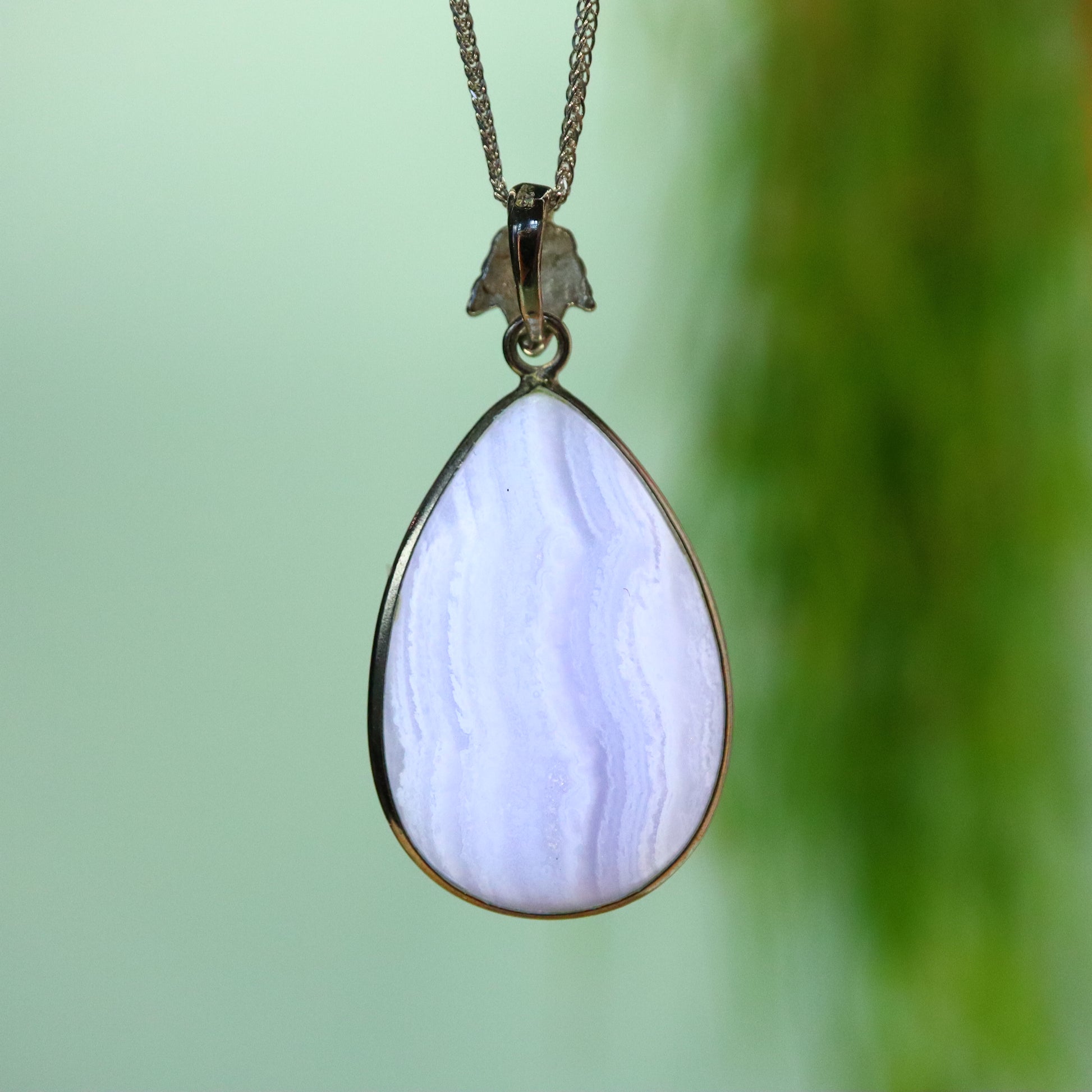 Een lichtblauw gestreepte variëteit van Agaat (Chalcedoon) Als lid van de uitgebreide agaatfamilie, is blauwe kant agaat of wel ’’blue lace agate’’ een vrij harde steen en extreem duurzaam.