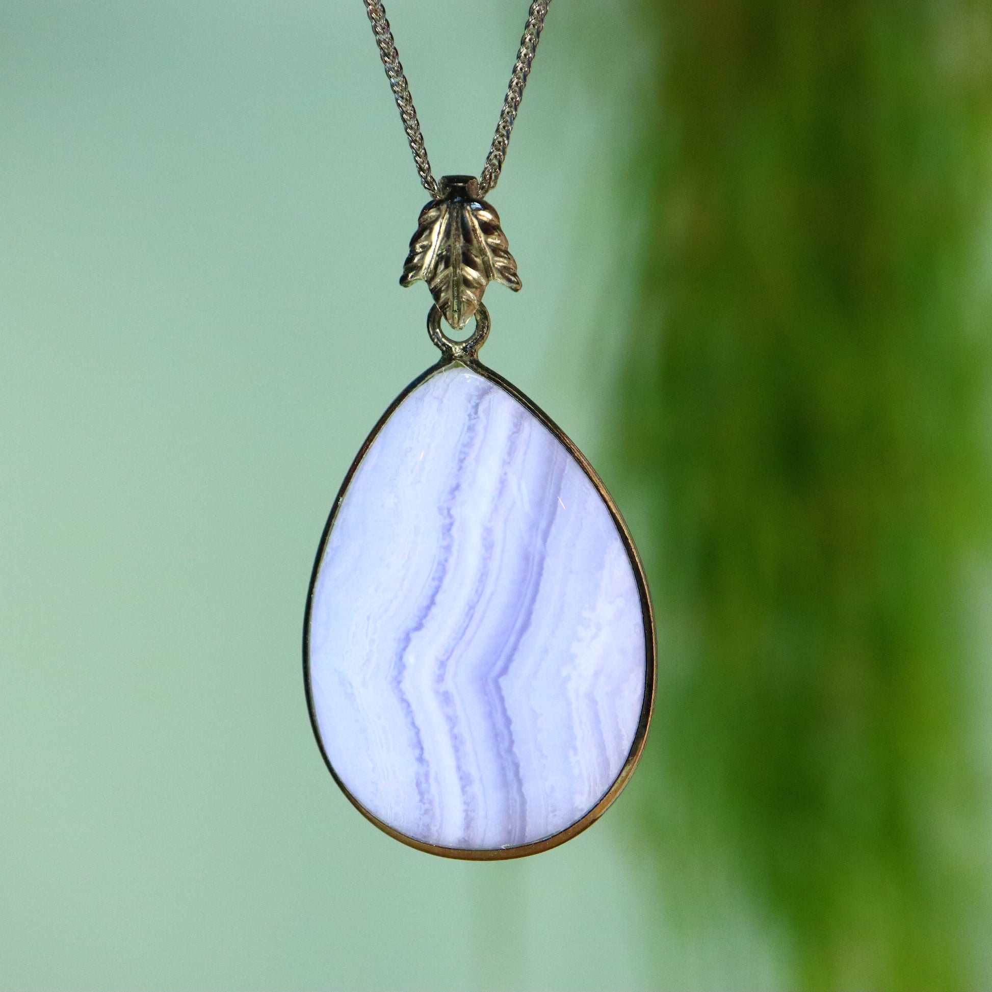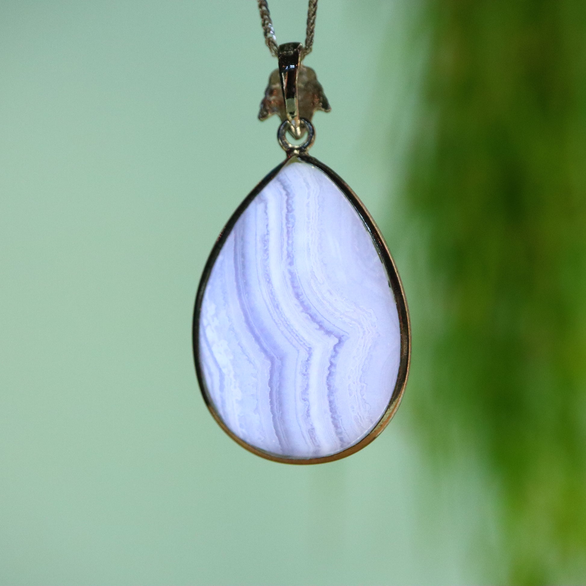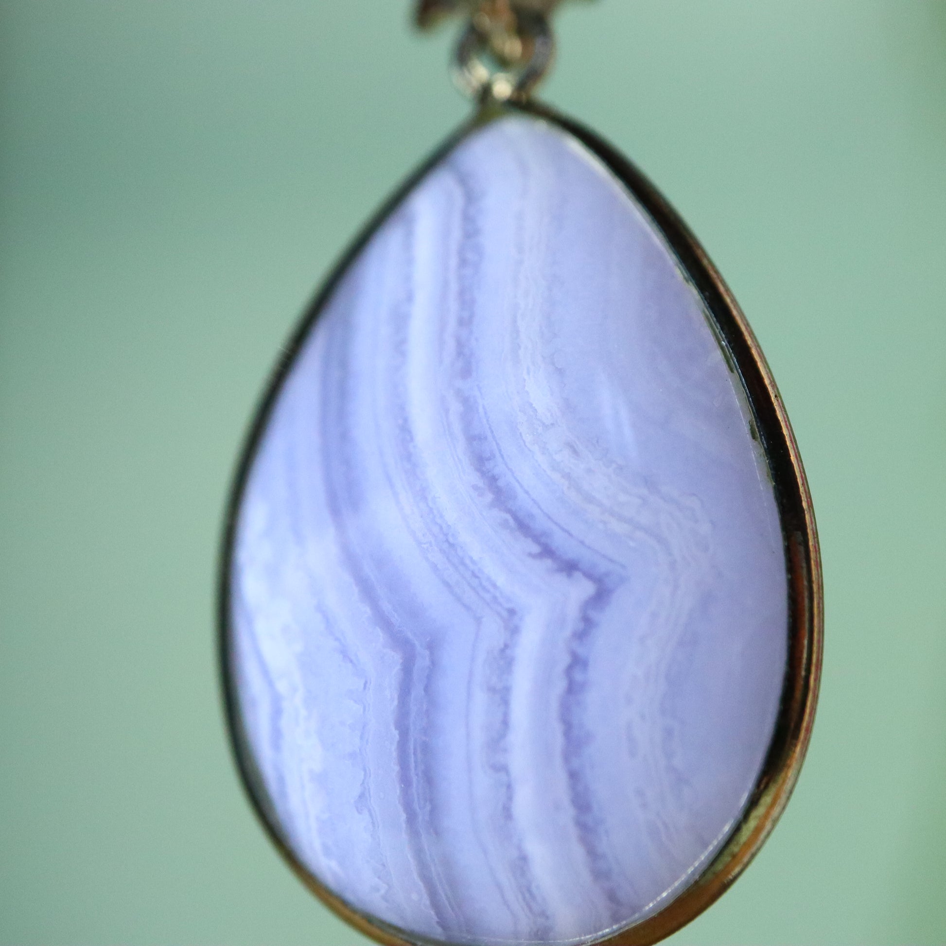 Een lichtblauw gestreepte variëteit van Agaat (Chalcedoon) Als lid van de uitgebreide agaatfamilie, is blauwe kant agaat of wel ’’blue lace agate’’ een vrij harde steen en extreem duurzaam.
