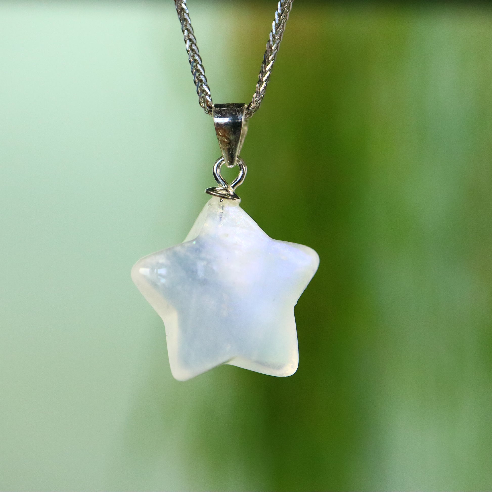 Maansteen staat bekend om zijn adularescentie, een subtiele binnen gloed die een schijn van blauw tot wit over het oppervlak creëert, terwijl regenboogmaansteen wordt onderscheiden door zijn levendige labradorescentie, waarbij kleurrijke reflecties zoals blauw, groen en paars verschijnen. Beide stenen hebben een hardheid van ongeveer 6 tot 6,5 op de Mohs-schaal, waardoor ze relatief zacht zijn.