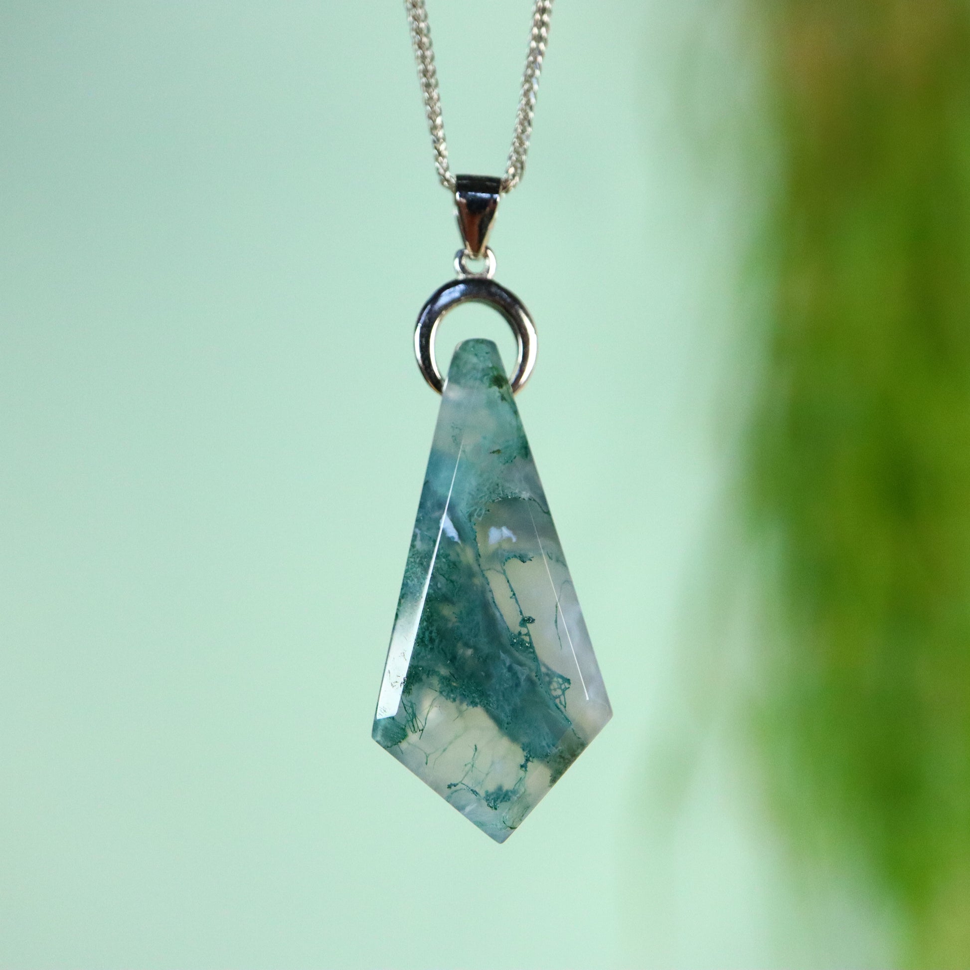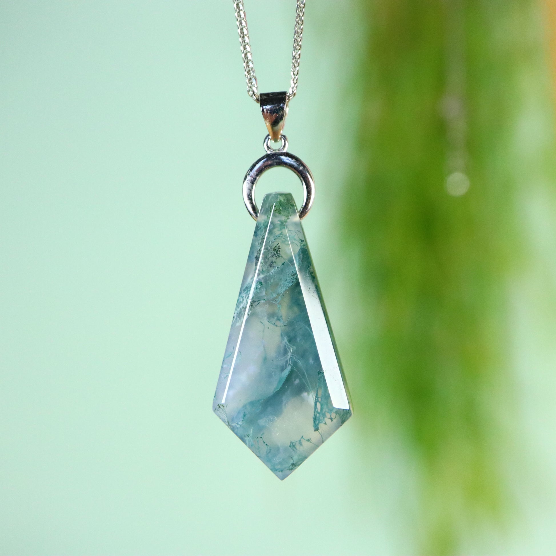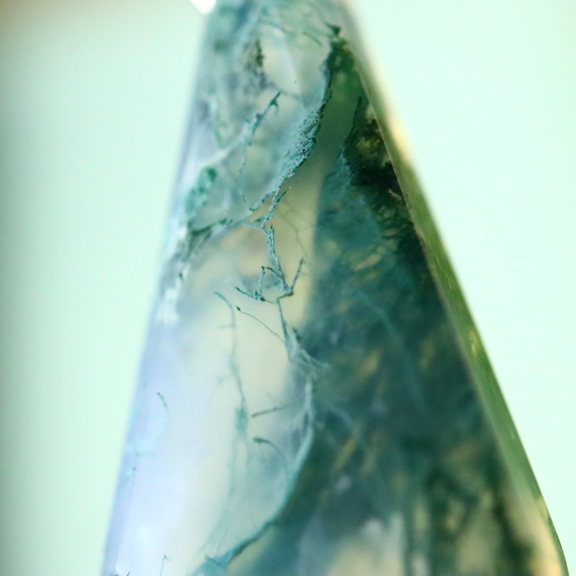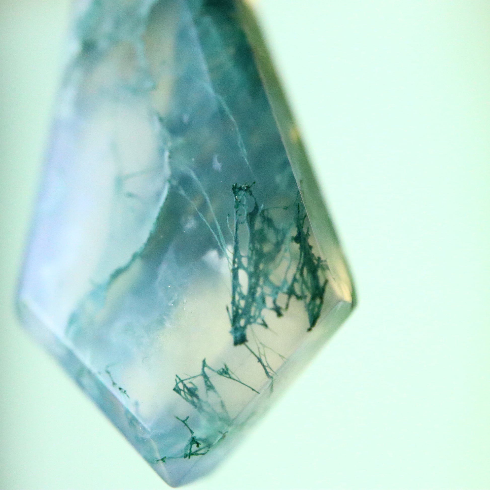 Moss agaat staat bekend als een halfedelsteen. Het is gevormd uit siliciumdioxide en is een vorm van chalcedoon, Deze chalcedoon bevat insluitingen die vaak groen getint zijn.