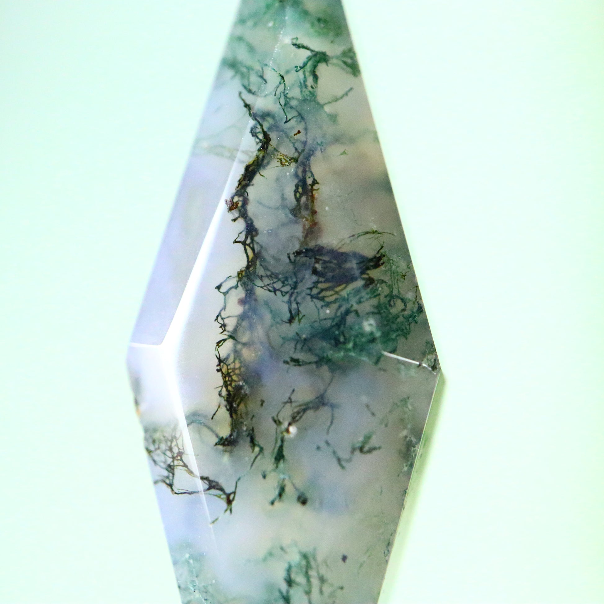 Moss agaat staat bekend als een halfedelsteen. Het is gevormd uit siliciumdioxide en is een vorm van chalcedoon, Deze chalcedoon bevat insluitingen die vaak groen getint zijn.