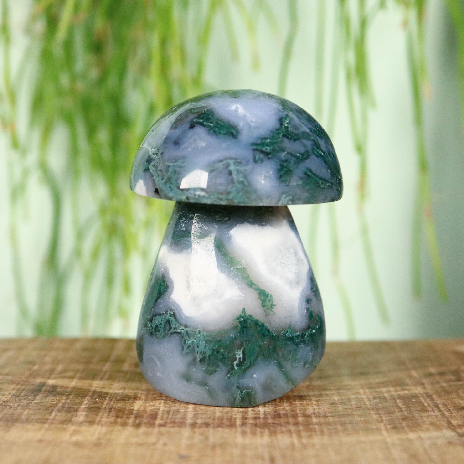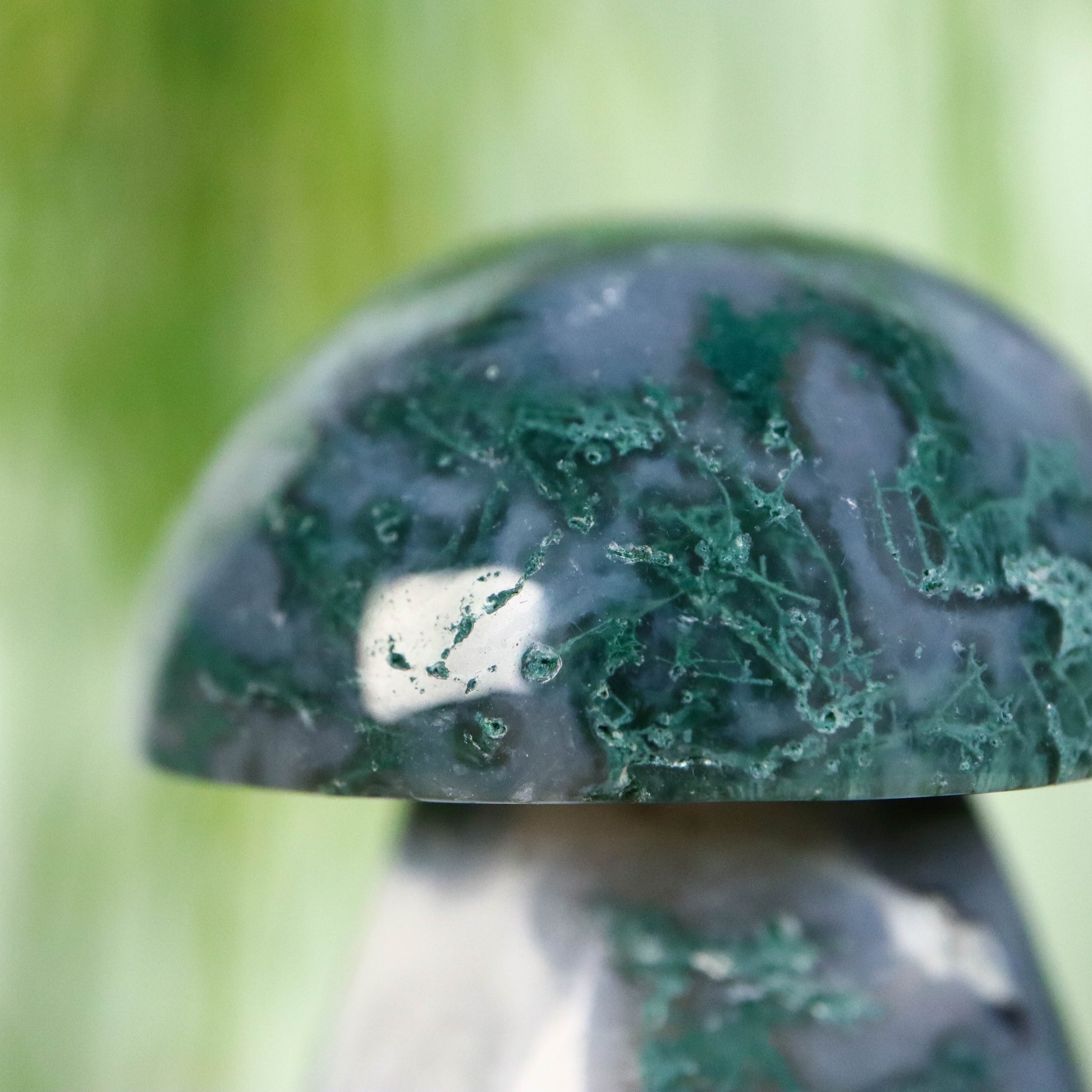 Moss agaat staat bekend als een halfedelsteen. Het is gevormd uit siliciumdioxide en is een vorm van chalcedoon, Deze chalcedoon bevat insluitingen die vaak groen getint zijn.