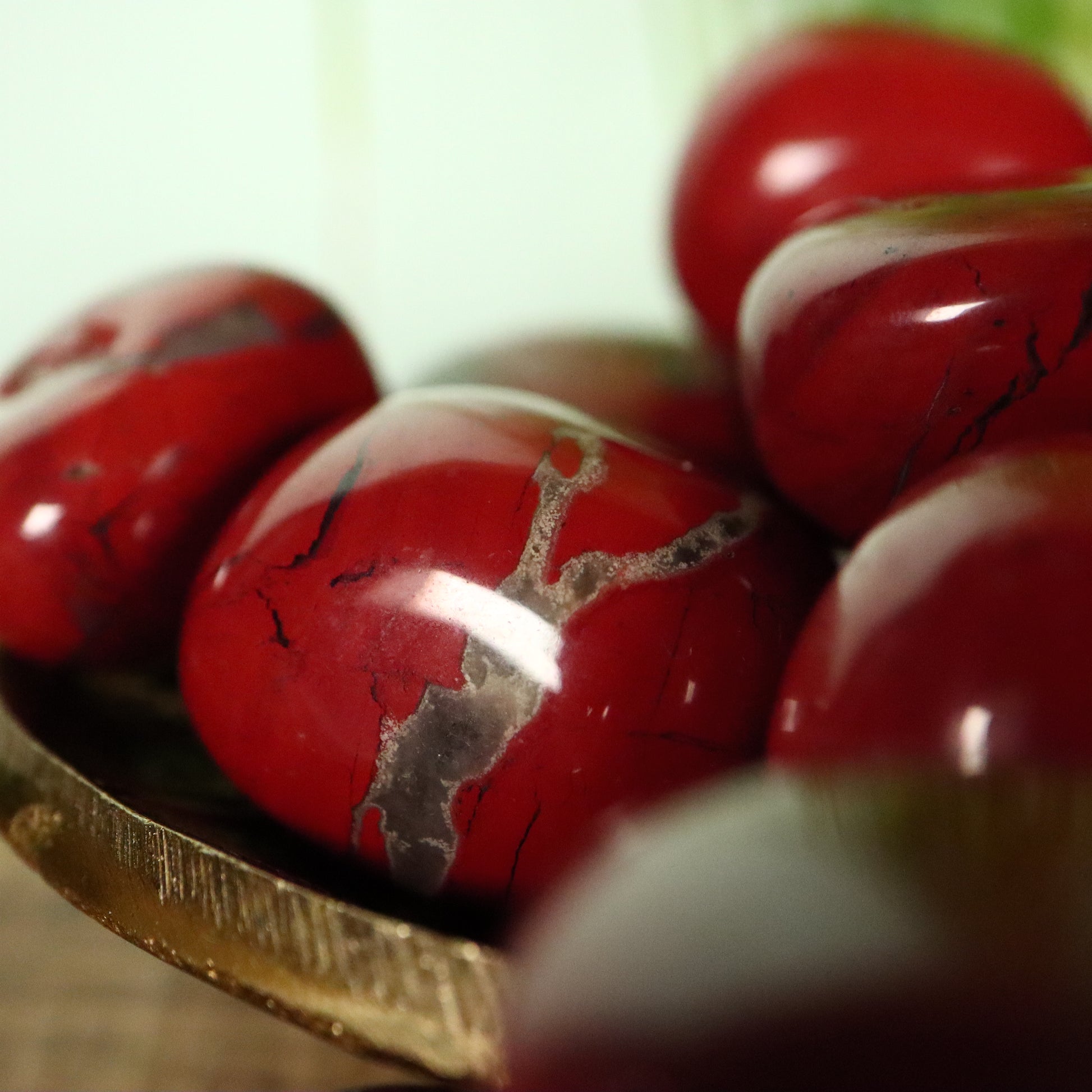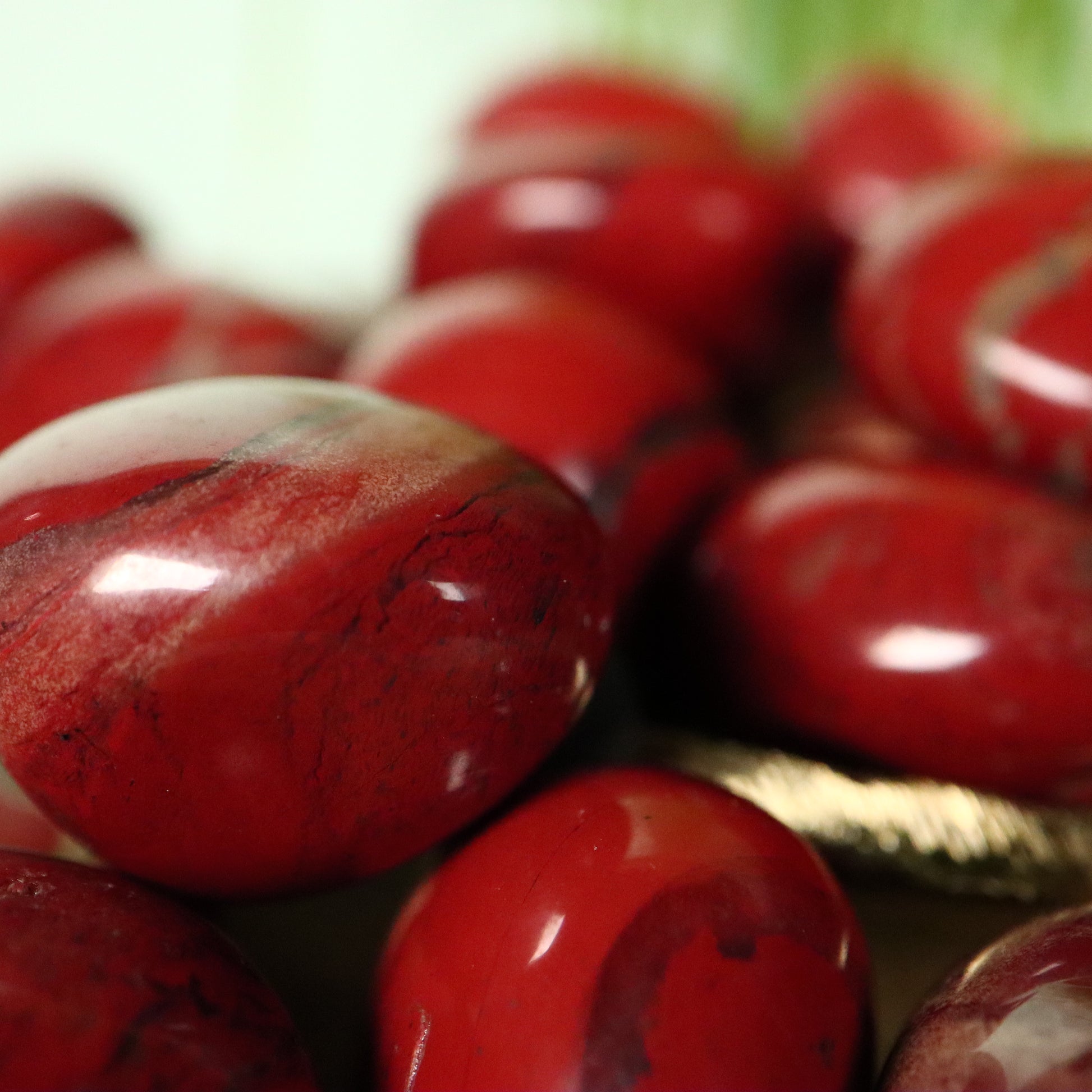 Rode jaspis wordt vaak geassocieerd met aardende energieën, die stabiliteit en een gevoel van veiligheid bieden. Deze steen wordt verondersteld om fysieke kracht en energie te stimuleren, evenals de uithoudingsvermogen te verbeteren. Het wordt ook toegeschreven aan het bevorderen van moed, vastberadenheid en zelfvertrouwen. Rode jaspis zou ook passie en creativiteit kunnen aanwakkeren.